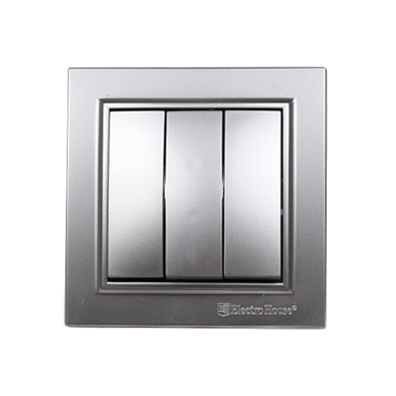 Вимикач потрійний кольори срібний камінь EH-2185-ST серії Enzo компанії ElectroHouse стане раціональним рішенням для приміщень з великою кількістю освітлювальних приладів. Ця модель оснащена 3 клавішами і дозволить управляти трьома електроприладами. Матеріал виробу - високоякісний термостійкий пластик, який проявляє стійкість до вицвітання.